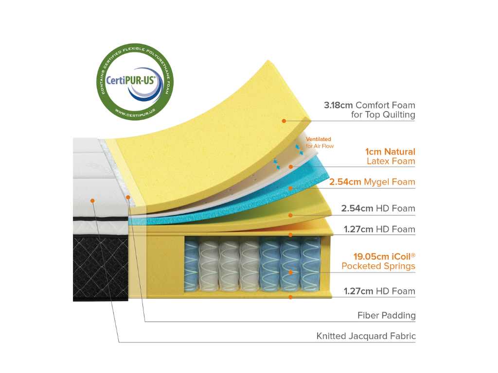 - iCoil® Technology – Individually wrapped iCoil® technology provides pressure-relief support, customized spinal alignment, and reduced motion transfer from sleeping partners