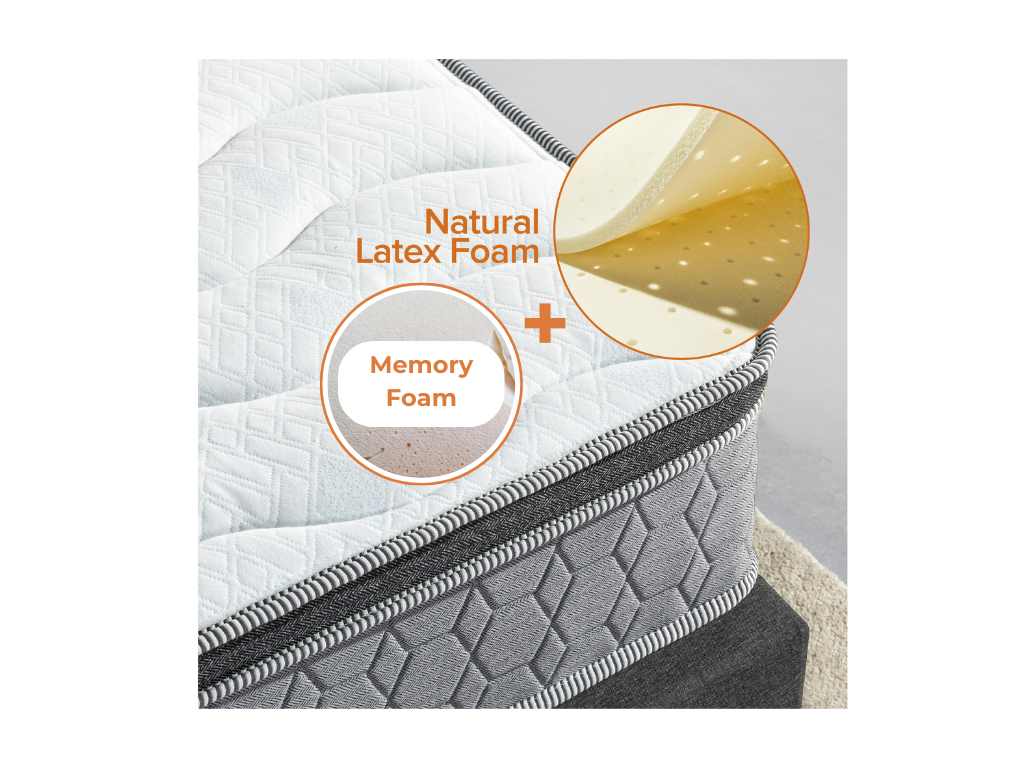 - NATURAL LATEX -Featuring biodegradable and organic properties, natural latex discourages the growth of bacteria, making it an ideal choice for those with sensitive skin. Its hypoallergenic nature ensures a comfortable sleep environment.