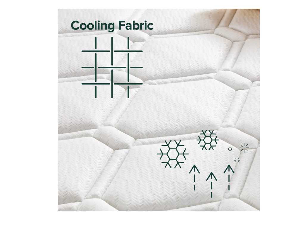 - ULTRA COOL FABRIC COVER - Designed for optimal temperature regulation during sleep, this fabric cover feels cool to the touch, enhancing airflow and ventilation for a refreshing night's rest.