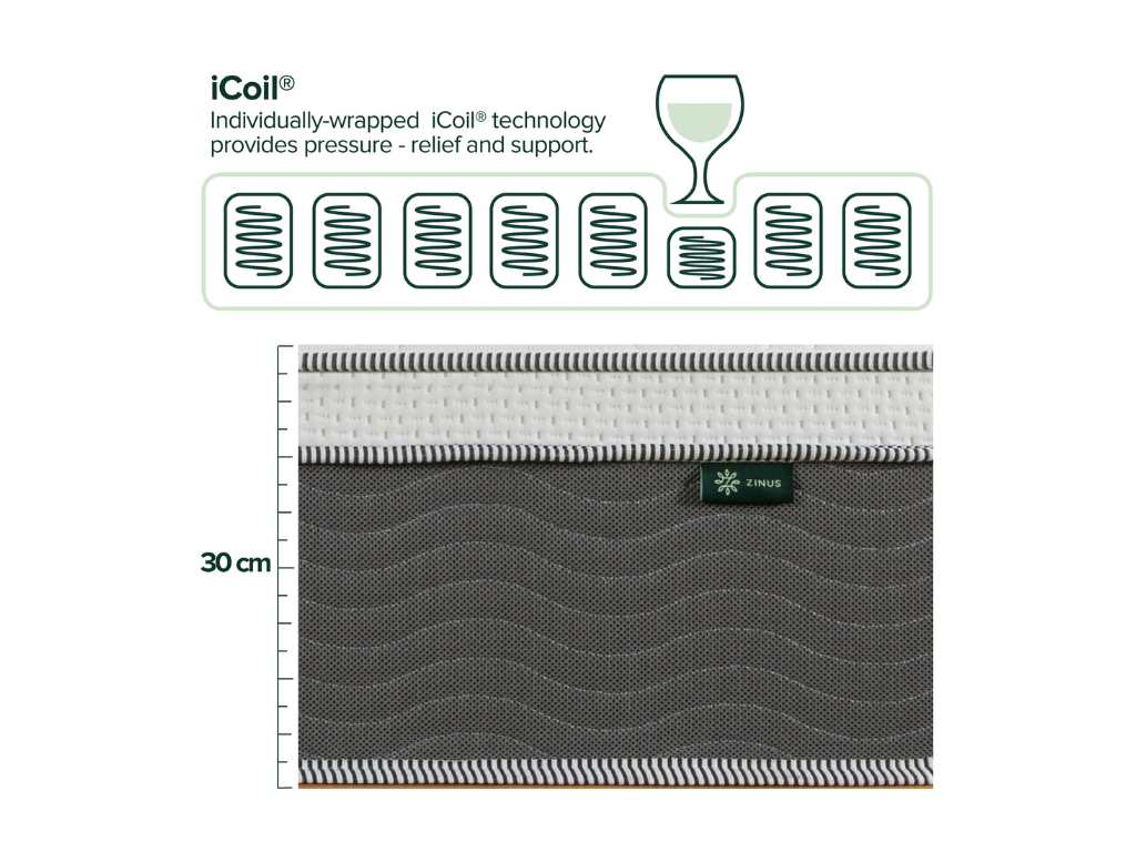 - iCoil® Technology – Individually wrapped iCoil® technology provides pressure-relief support, customized spinal alignment, and reduced motion transfer from sleeping partners